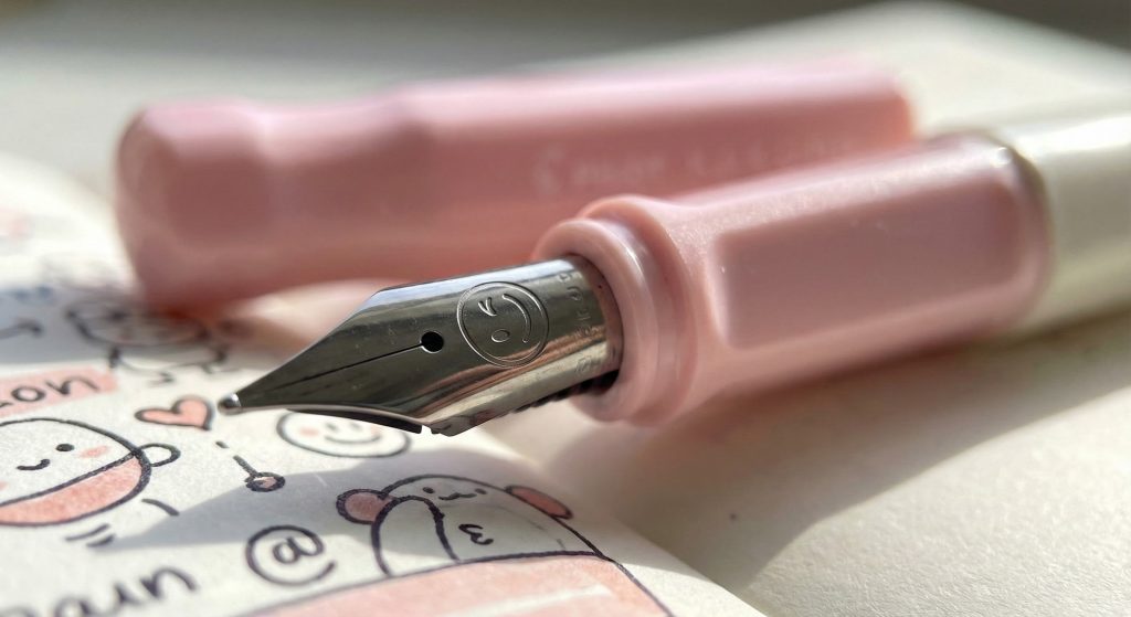 • The Nib: The best part! Look closely at the metal nib—it has a tiny smiley face engraved on it. It literally smiles at you while you write. 😊