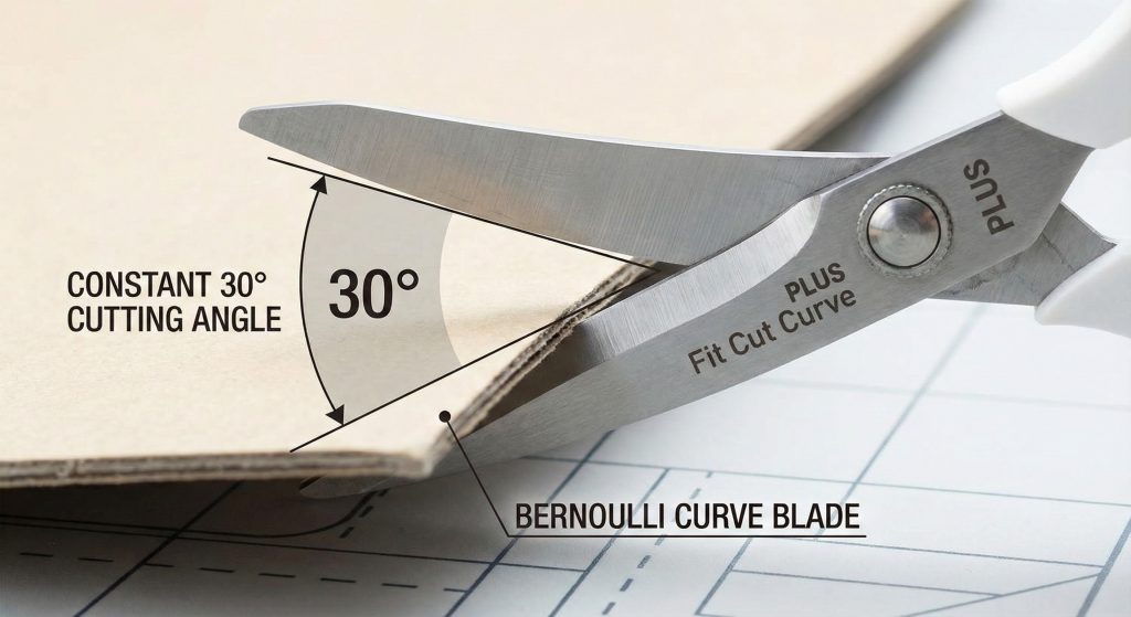 Look at the blades of a normal pair of scissors. They are straight. Now look at the PLUS Fit Cut Curve. The blades are curved like a bow.